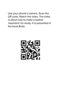 The book addresses the process of stuffing a study blackbird (Turdus merula) through my own method of preparation. The animals are prepared in skin so as to be useful for educational purposes. It is not necessary to give the specimen a naturalistic appearance, as it is usually placed in a supine position with one wing slightly open, allowing the underside to be viewed. The size of the book is 20.5 x 14.5 cm and contains 96 pages. Also included are 25 minutes of footage divided into 4 segments. Next to each segment is an image of a QR code that, when framed with a phone camera, allows you to view the corresponding movie; you can prove this from the second image in the book.