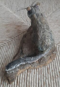 La scultura del un Ghiro a dimensioni naturali è stata creata utilizzando una miscela di argilla e cartapesta, con dimensioni di 18 x 9 x 9 centimetri. È stato meticolosamente dipinto con colori acrilici che riproducono in modo fedele le sfumature naturali del Ghiro. Gli occhi sono realizzati in vetroresina e presentano una fedele riproduzione del colore dell’iride originale dell’animale. Questa è un’opera unica nel suo genere.