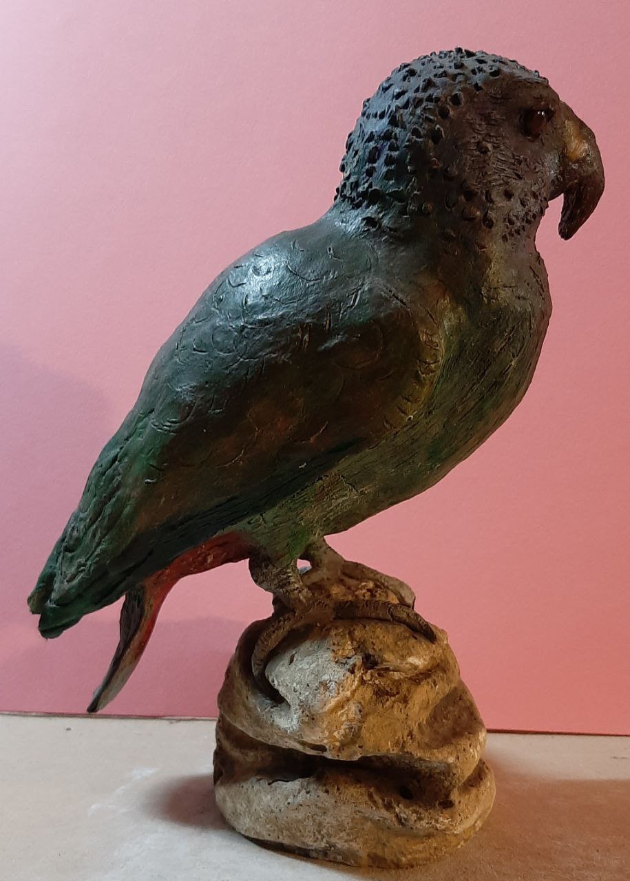 La scultura di un Pappagallo nero esotico a dimensioni naturali è stata creata utilizzando una miscela di argilla e cartapesta, con dimensioni di 21 x 13 x 20 centimetri. È stata meticolosamente dipinta con colori acrilici che riproducono in modo fedele le sfumature naturali del Pappagallo nero esotico. Gli occhi sono realizzati in vetroresina e presentano una fedele riproduzione del colore dell’iride originale dell’animale. Questa è un’opera unica nel suo genere.