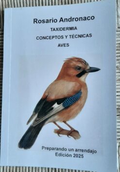 El libro describe el proceso de embalsamamiento de un arrendajo euroasiático (Garrulus glandarius) mediante mi método personal de preparación. Mide 21 x 15 cm y consta de 123 páginas. Incluye además 65 minutos de vídeo divididos en 18 segmentos. Junto a cada segmento hay un código QR que, al escanearlo con la cámara de un teléfono inteligente, permite ver el vídeo correspondiente. Puede verlo en la segunda imagen del libro.