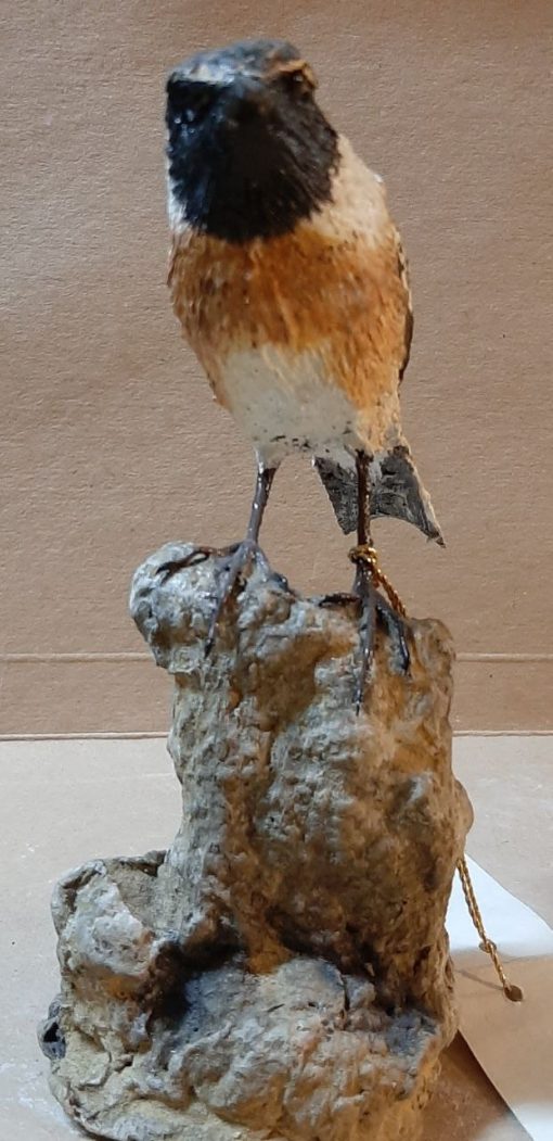Il Saltimpalo in dimensioni naturali è stato modellato utilizzando argilla miscelata con cartapesta e presenta dimensioni di 12 x 6 x 15 centimetri. è stato accuratamente dipinto utilizzando colori acrilici che replicano fedelmente i toni naturali del Saltimpalo. Gli occhi sono stati realizzati in vetroresina, con colori che replicano quelli dell’iride originale nera dell’animale.