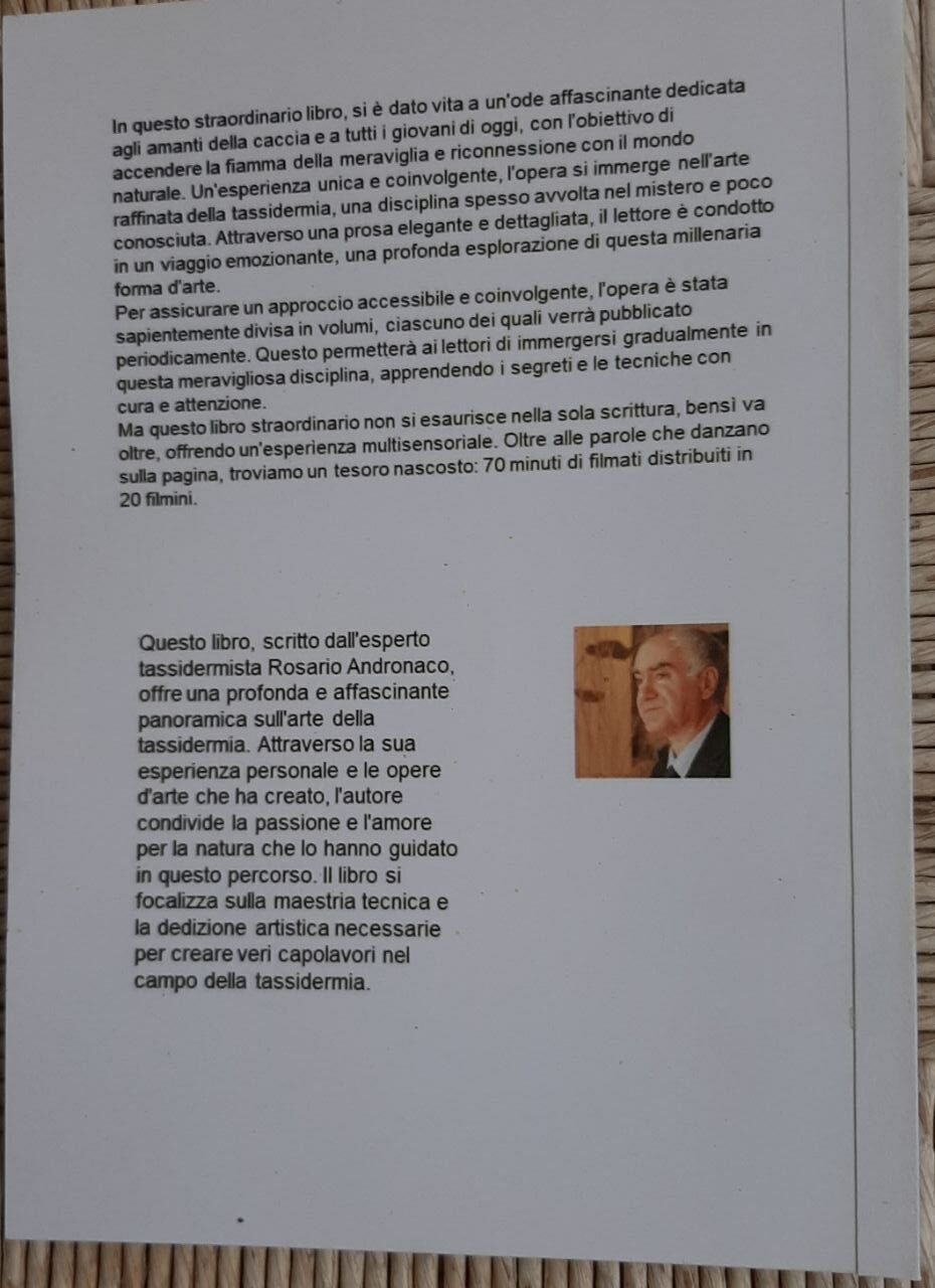 Il libro tratta del processo di imbalsamazione di una pavoncella (Vanellus vanellus) mediante il mio personale metodo di preparazione. Le dimensioni del libro sono 21,00 x 15 cm, e comprende 159 pagine. Inoltre, sono inclusi 70 minuti di video suddivisi in 20 segmenti. Adiacente a ciascun segmento è presente un codice QR, il quale, una volta inquadrato con la fotocamera di uno smartphone, permette di visualizzare il video corrispondente. Potete provarlo dalla seconda immagine del libro.