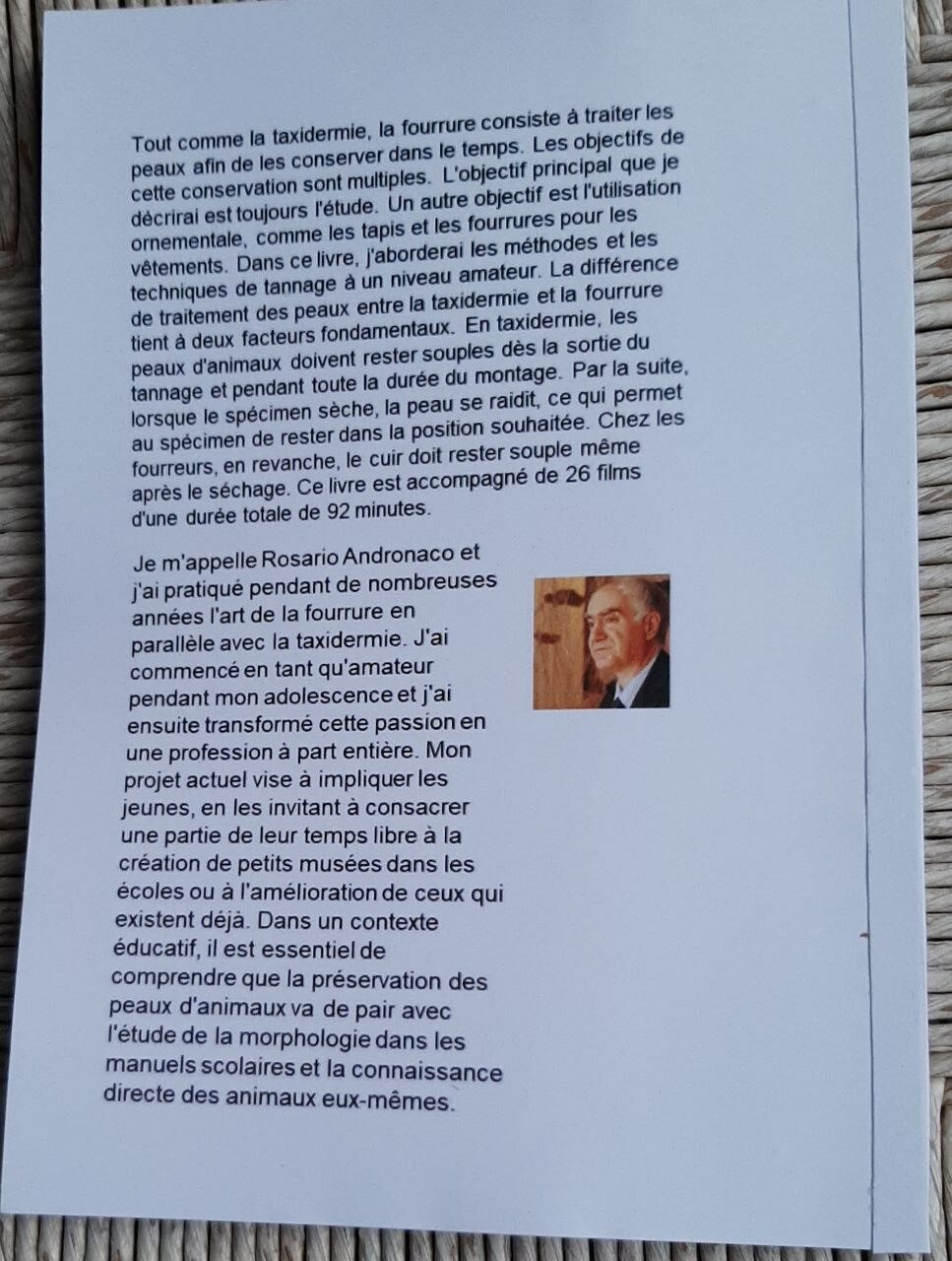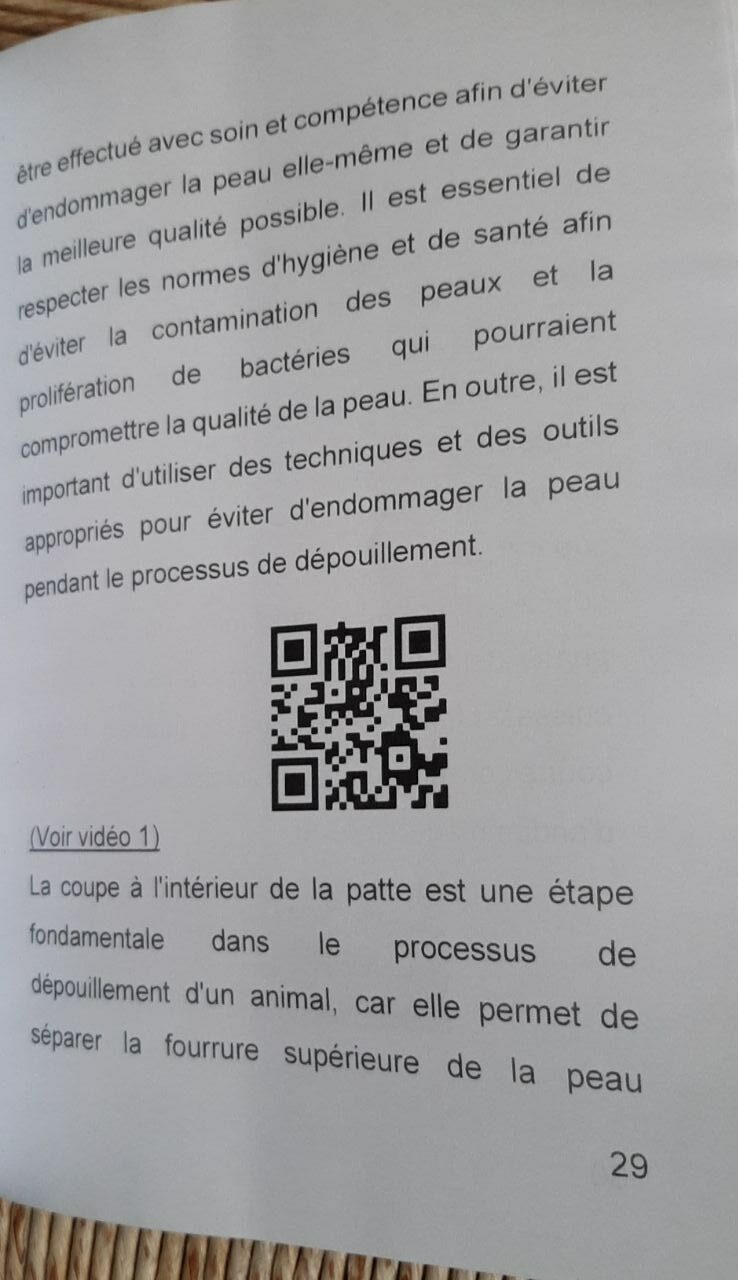 Le livre traite du processus de tannage d’une peau de renard en utilisant ma propre méthode de préparation. Le livre mesure 21,00 x 14,5 cm et contient 112 pages. Il contient également 92 minutes de vidéo divisées en 26 segments. À côté de chaque segment se trouve l’image d’un code QR qui, lorsqu’il est cadré avec l’appareil photo d’un téléphone portable, permet de visionner le film correspondant, Essayez-le à partir de la deuxième image.