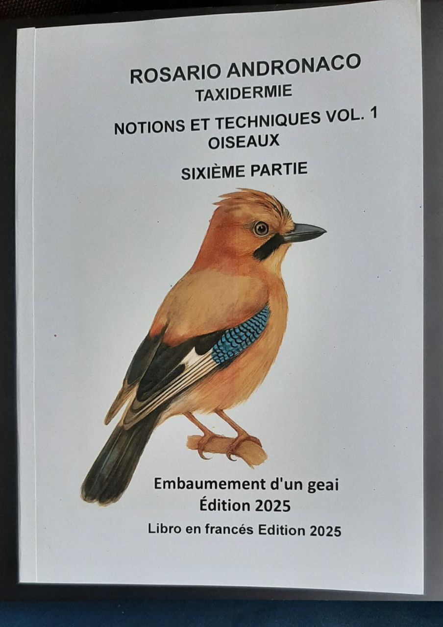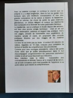 Le livre traite du processus d’embaumement d’un geai (Garrulus glandarius) selon ma méthode personnelle de préparation. Le livre mesure 21,00 x 15 cm et compte 132 pages. Il comprend également 65 minutes de vidéo divisées en 18 segments. À côté de chaque segment se trouve un code QR qui, une fois scanné avec l’appareil photo d’un smartphone, permet de visionner la vidéo correspondante. Vous pouvez l’essayer à partir de la deuxième image du livre.