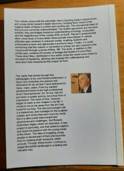 The book deals with the process of stuffing a Study Thrush. The animal is prepared in leather so as to be useful for educational purposes. It is not necessary to give the specimen a naturalistic appearance, as it is usually placed in a supine position with one wing slightly open, allowing the underside to be viewed. The size of the book is 20.5 x 14.5 cm and contains 101 pages. Also included are 20 minutes of footage divided into 9 segments. Next to each segment is an image of a QR code that, when framed with a phone camera, allows you to view the corresponding movie; you can prove this from the second image in the book.